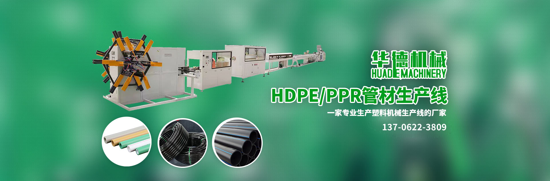 專業制造:系列單雙螺桿擠出機、PPR管材生產線、PVC給水/排水管材生產線、HDPE管材生產線、MPP/CPVC電力管生產線、PVC各類異型材等成套擠出生產線及干燥機、上料機、破碎機、擴口機、高速混合機、牽引機、磨粉機等系列塑料機械。